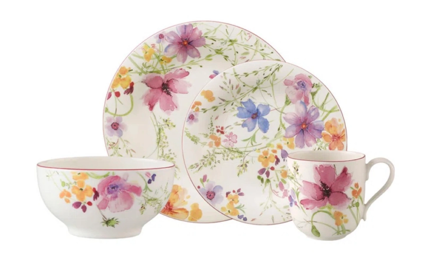 510Includes a mug, dinner plate, bread and butter plate and a bowl.
