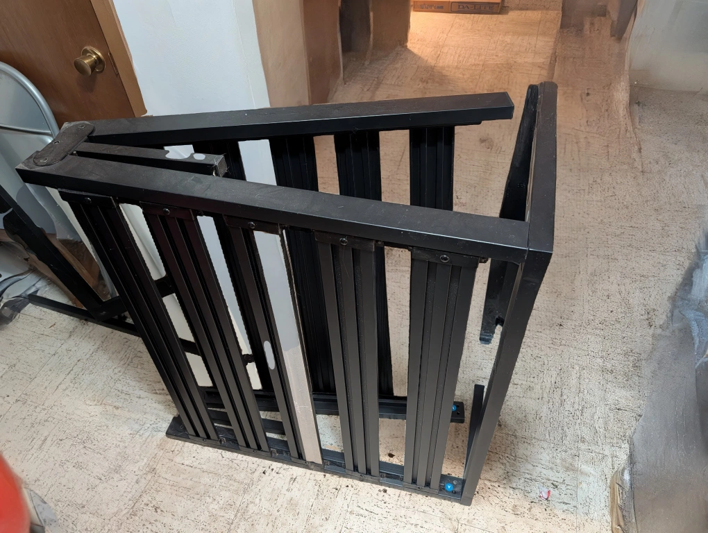Black metal twin bed frame. All pieces included, folds up for easy storage if necessary. . Good condition, no damage.