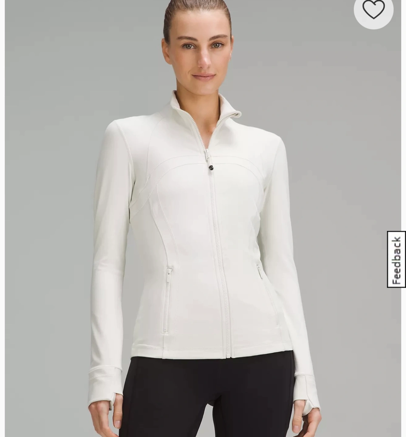 White Lululemon Define jacket. Size 4. Long sleeves with thumbholes. Zip up front.