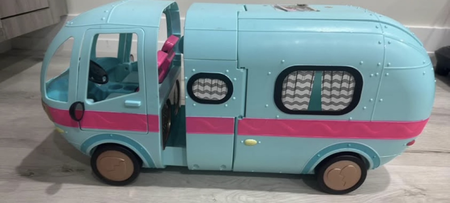 LOL Surprise! Camper Van Playset. Opens up to reveal a playset. Includes furniture and accessories.