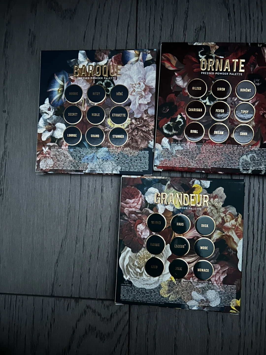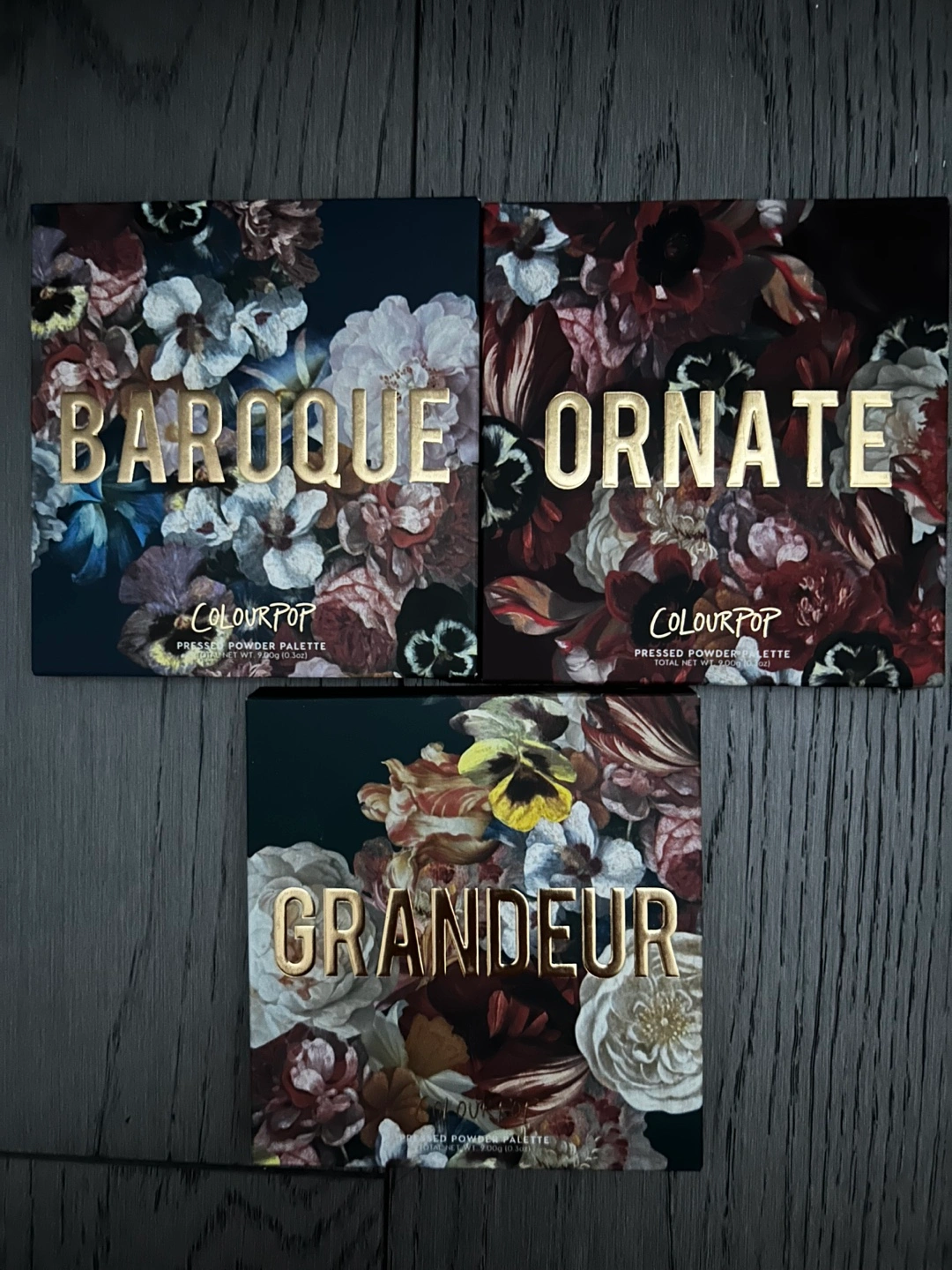 414Three ColourPop Pressed Powder Palettes. Baroque, Ornate and Grandeur Never swatched