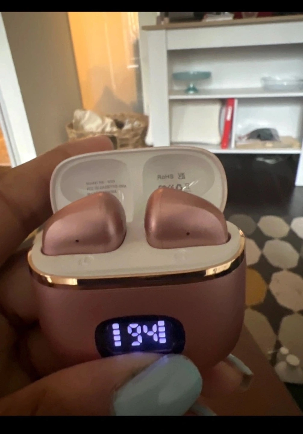 Brand new never used Wireless earbuds with a charging case. Digital battery display on the case. Rose gold colour. Looking to get back what I spent. Message gur additional photos or details