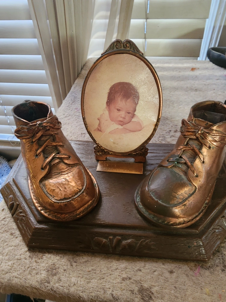 Vintage Baby Shoe Figurine with Picture Frame #freecycle