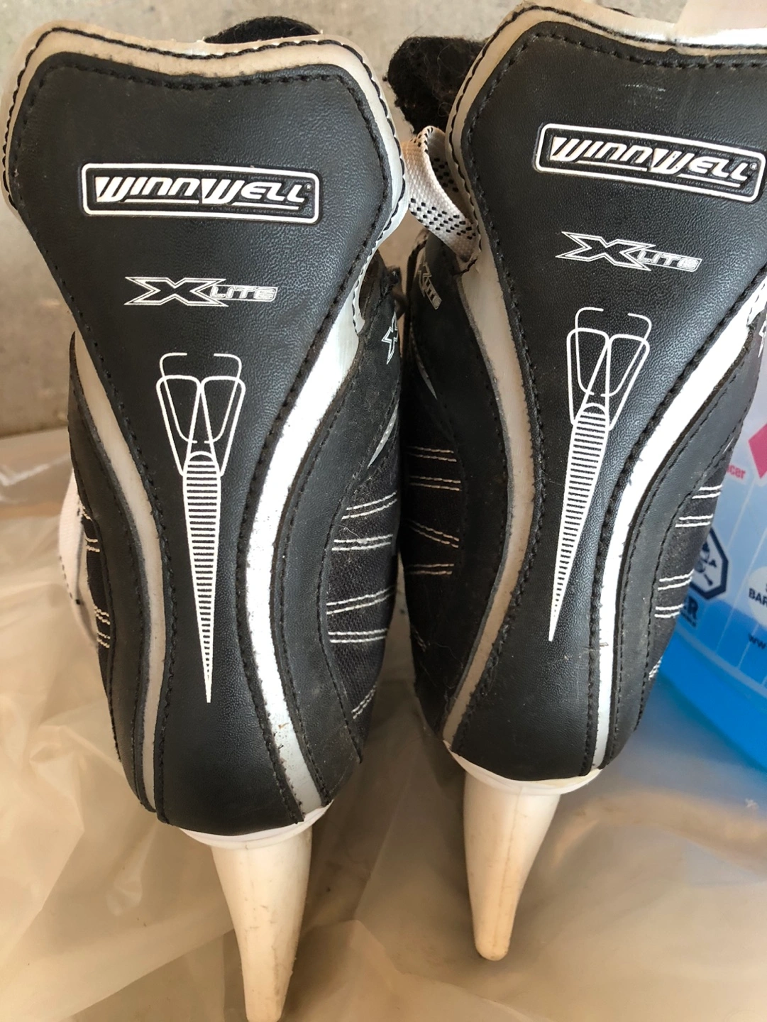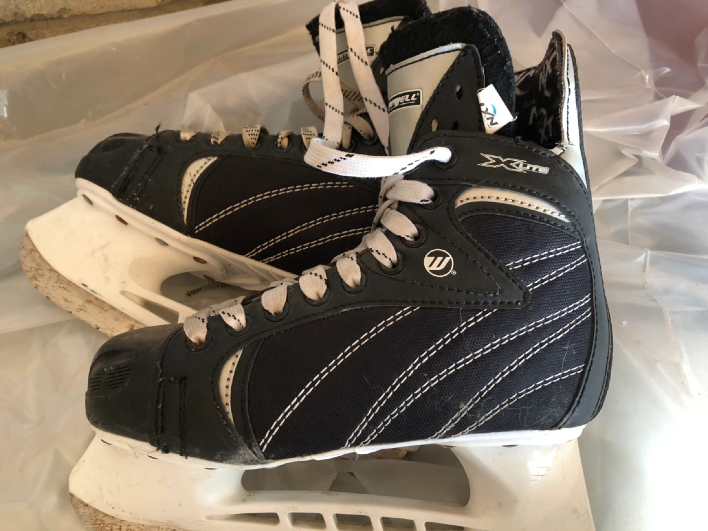Black and white junior hockey skates with white laces. Size JR5. Pickup from Christie station after 4:30pm during the week days.