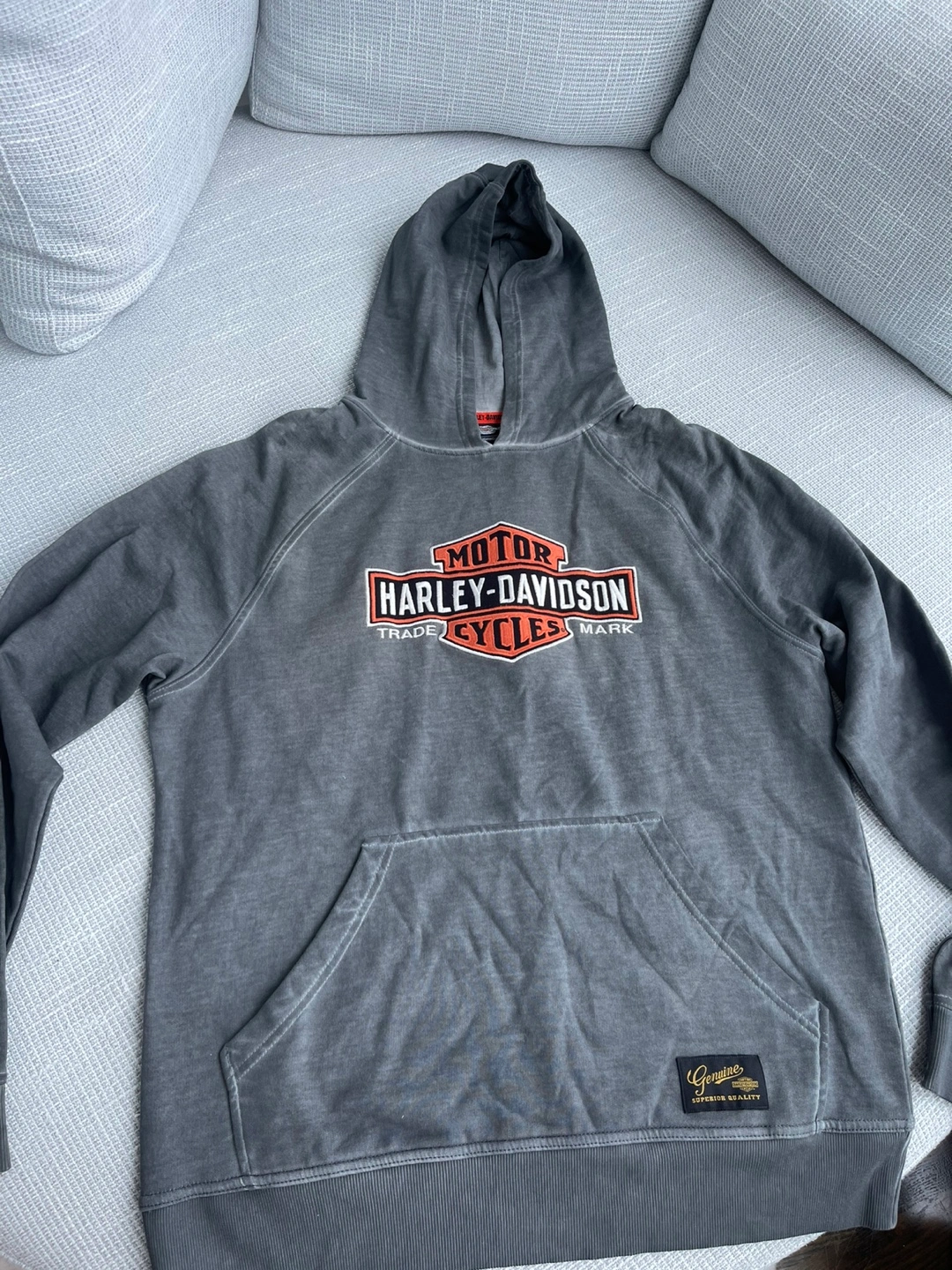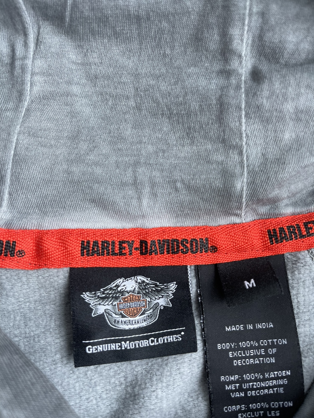 Grey hoodie with Harley Davidson logo. 100% cotton. Size M.