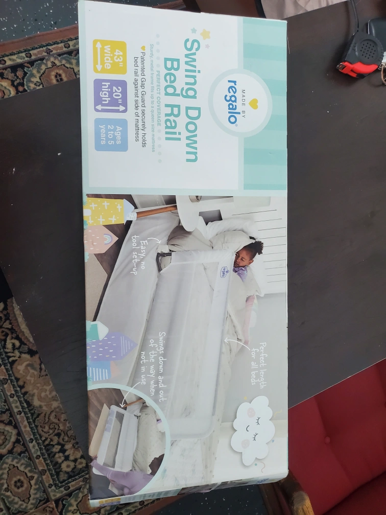 Sturdy metal frame. Fits up to a queen size mattress. Patented Gap Guard securely holds bed rail against side of mattress. Easy no tool set-up. Swings down and out of the way when not in use.