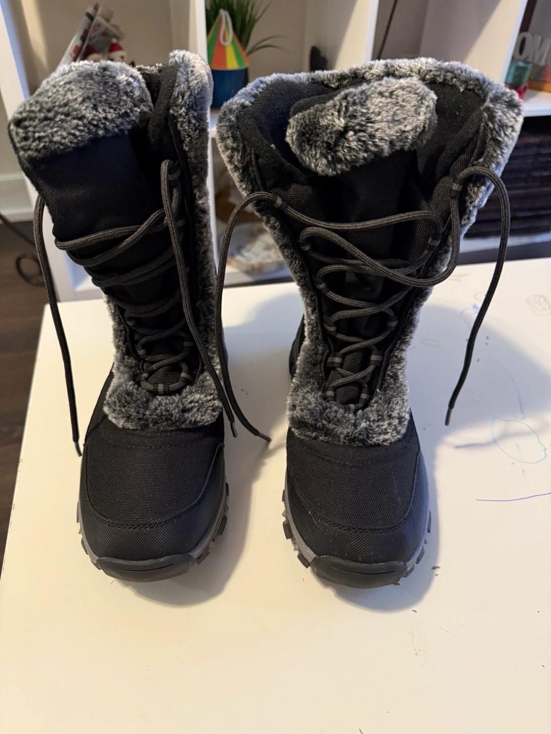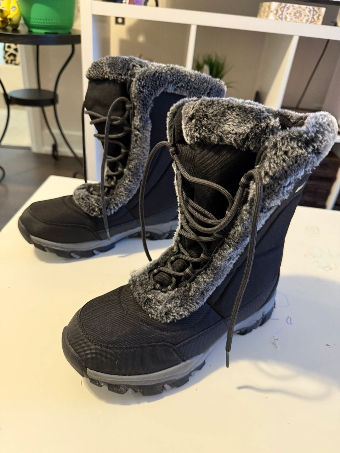 Black winter boots with faux fur lining. Lace-up closure. Good condition.