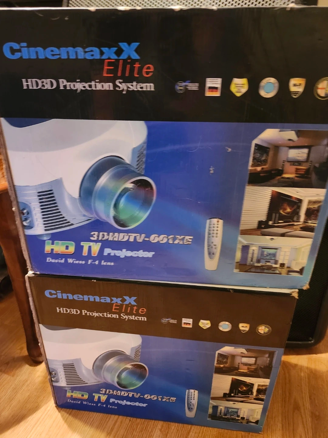 Selling a Cinemaxx Elite HD3D Projection System, model 3DHdtv-601xe. It boasts 4000 Ansi Lumens, a 15000:1 contrast ratio, and a lamp life of 8000 hours. The screen size is 40-200 inches with a 1920x1080 resolution. Comes with a full-function wireless remote and built-in NTSC TV tuner. Original MSRP was original price $225