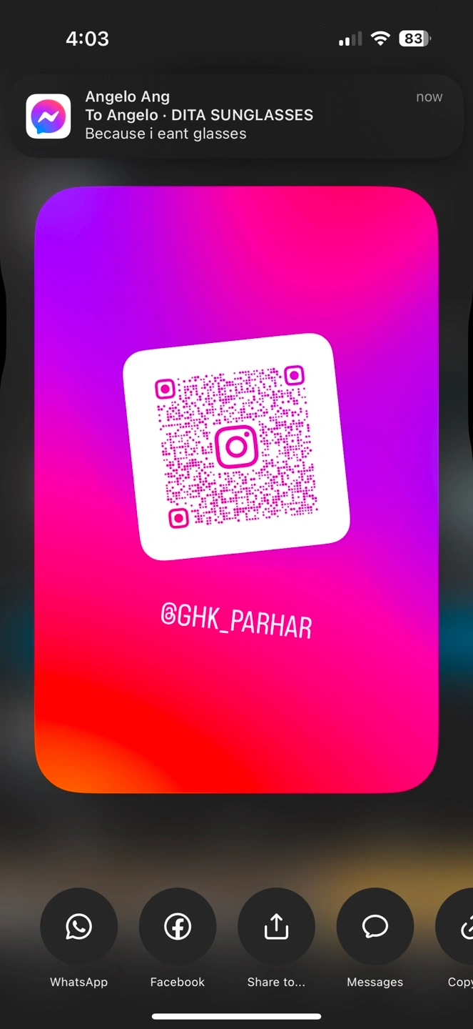 QR code to DITA Sunglasses.Hi everyone my instagram id GHK COLLECTION link here upload . Ladies & man’s collection brand available & upload all artical.check to my profile & select or msg me . Now all items on sale hurry . Merry Christmas & happy new year everyone & happy holidays too guys thanks