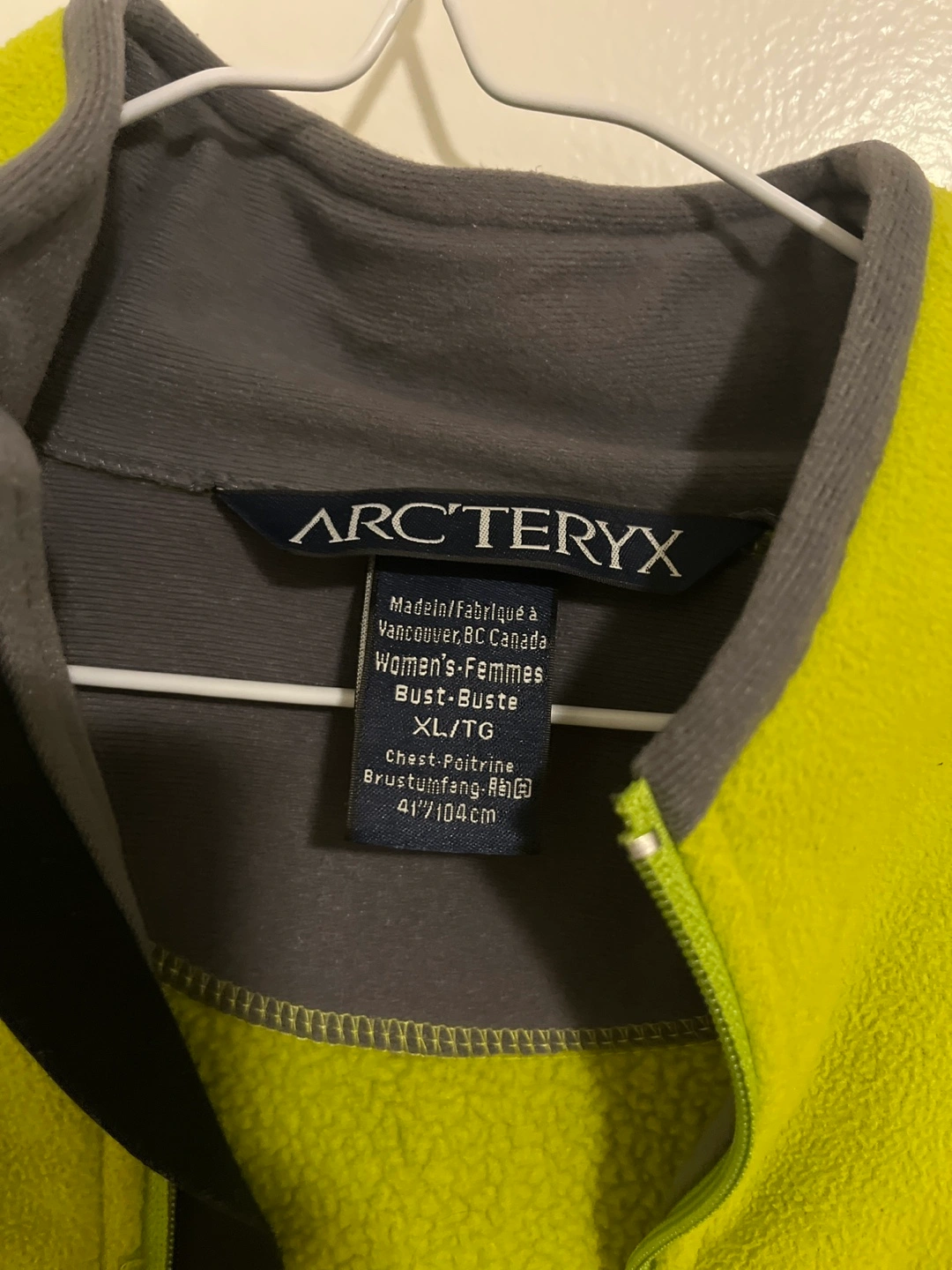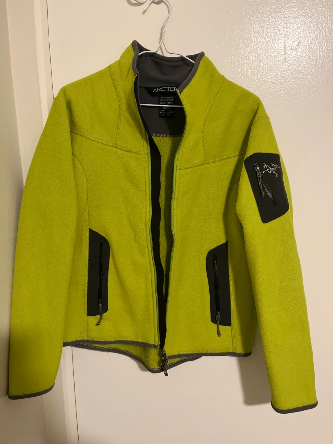 152Green fleece jacket with black zipper. Size XL. Made in Canada.