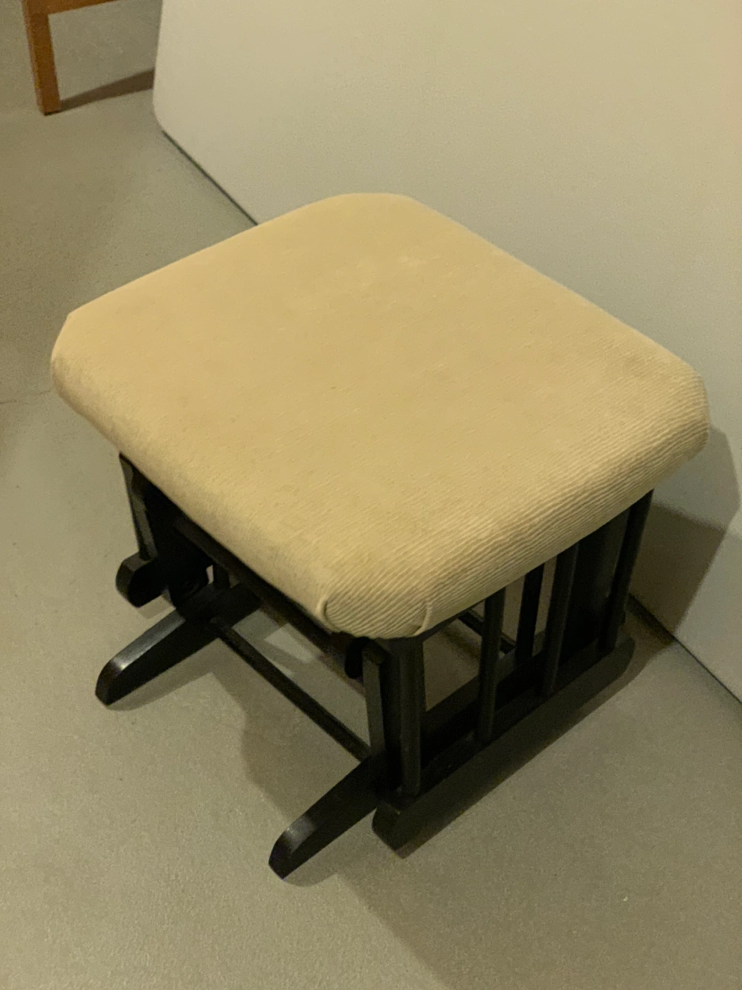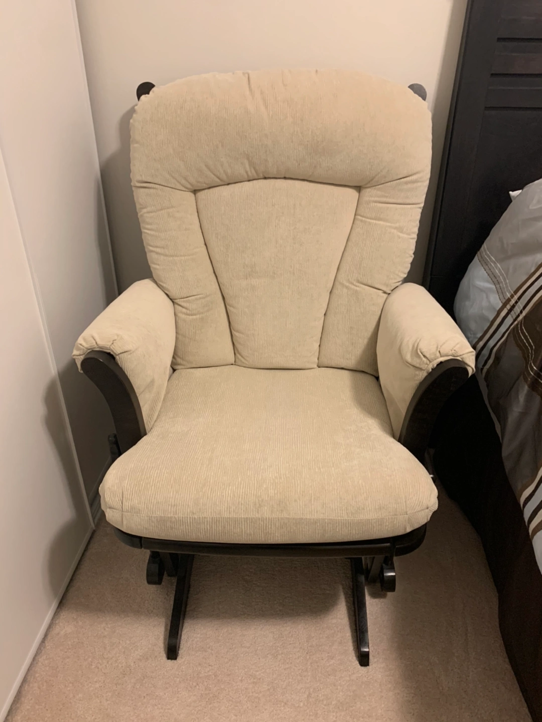 Used as a nursing chair then story time these days. Ottoman glides perfectly, chair does not glide smoothly, it "skips a beat" but locks and reclines just fine.