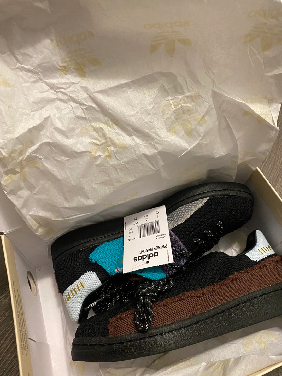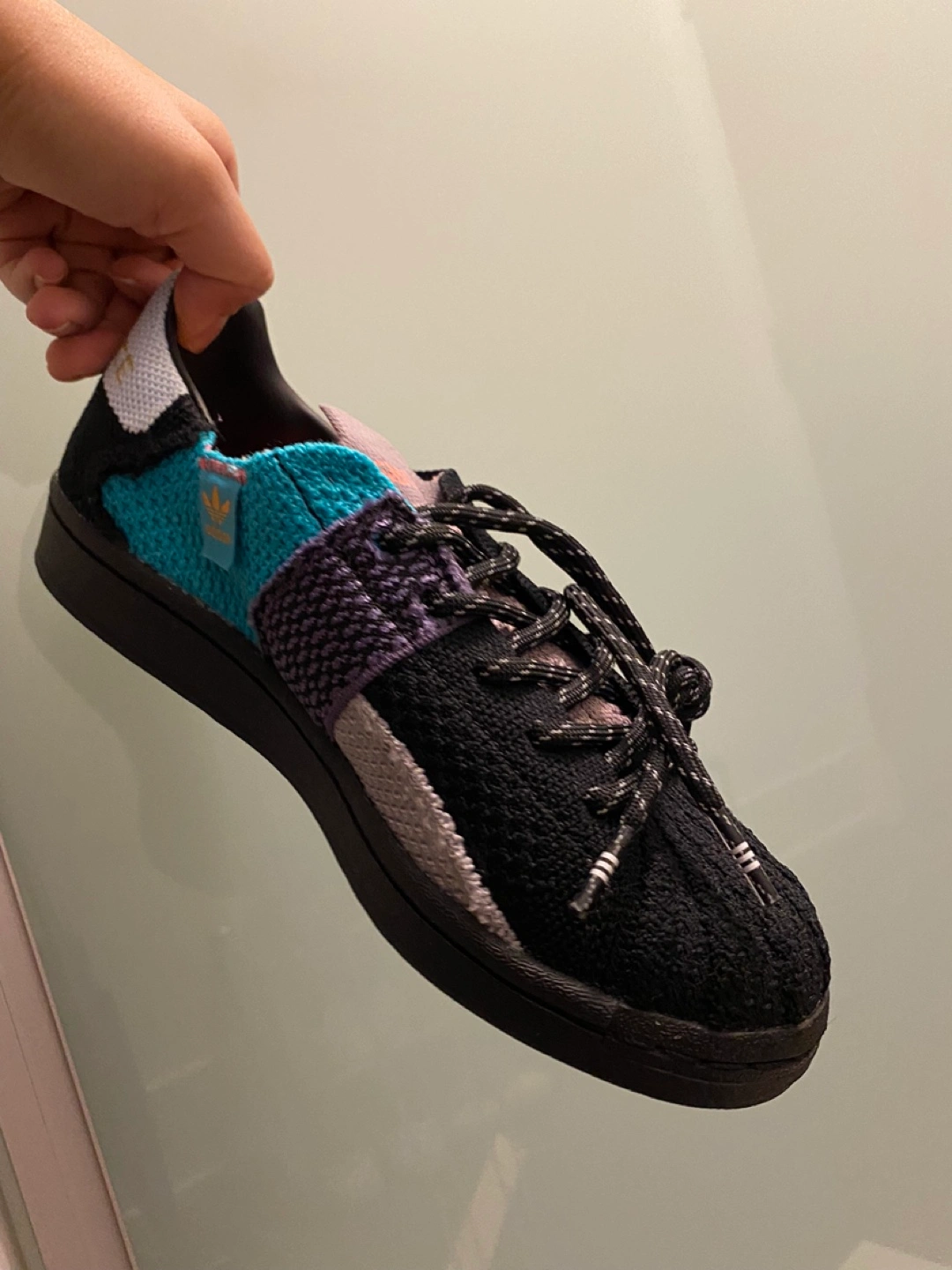 91Knitted Adidas Superstar shoes with black, brown, blue, and grey colours. Size 4 US Women's BNWB Price is negotiable. Low ballers will be ignored. Receipt can be provided upon request, bought from the Adidas app.