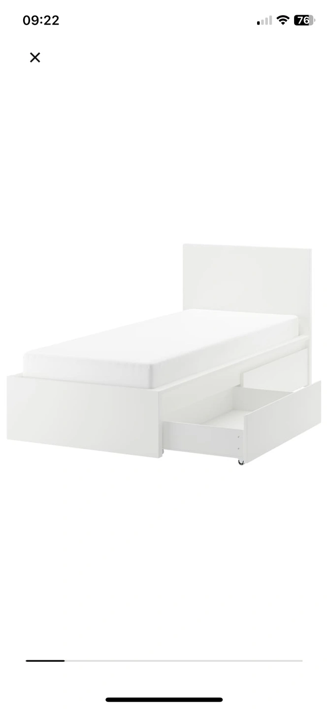 1000+Please read all. ————- •Store/Model: Ikea/Malm. •Colour: White. •Size: Twin. •Condition: Good. •Included: Bed frame, 2 rolling boxes (drawers) and slates. No mattress. •Bed frame has been dismantled for easy moving/storage/selling. ———— IMPORTANT-Disclaimer: Please, make sure that all parts are present by referencing my pics w/ Ikea instructions on its website. We believe all is there, but since it has not been rebuild since moving, we can’t take responsibility if anything is missing. If it’s the case, know that ikea provides a lot of things for free, or you can find it in the “Returns” section for minimal cost. ———- Pick-up and cash only. Map location on listing. Address given after meetup is settled. No holds, first come first served. Thx! 💛Look at my other listings for great bundle discounts.