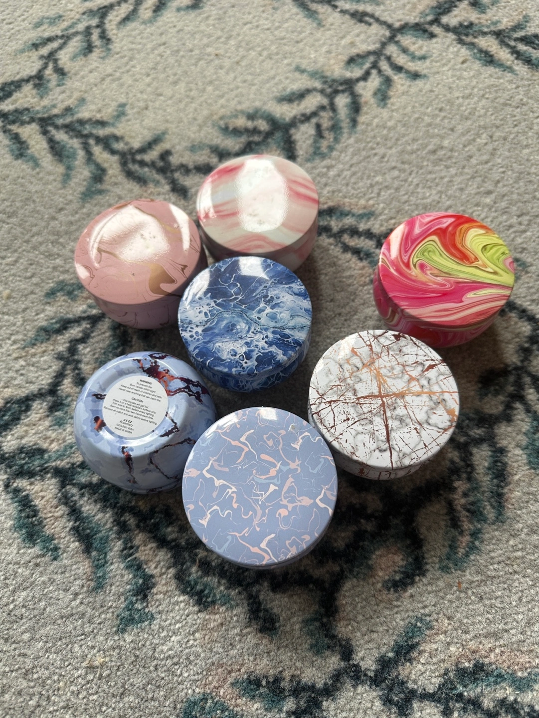 Set of 6 mini tin candles with different marble patterns. Perfect for storing small items.#freecycle