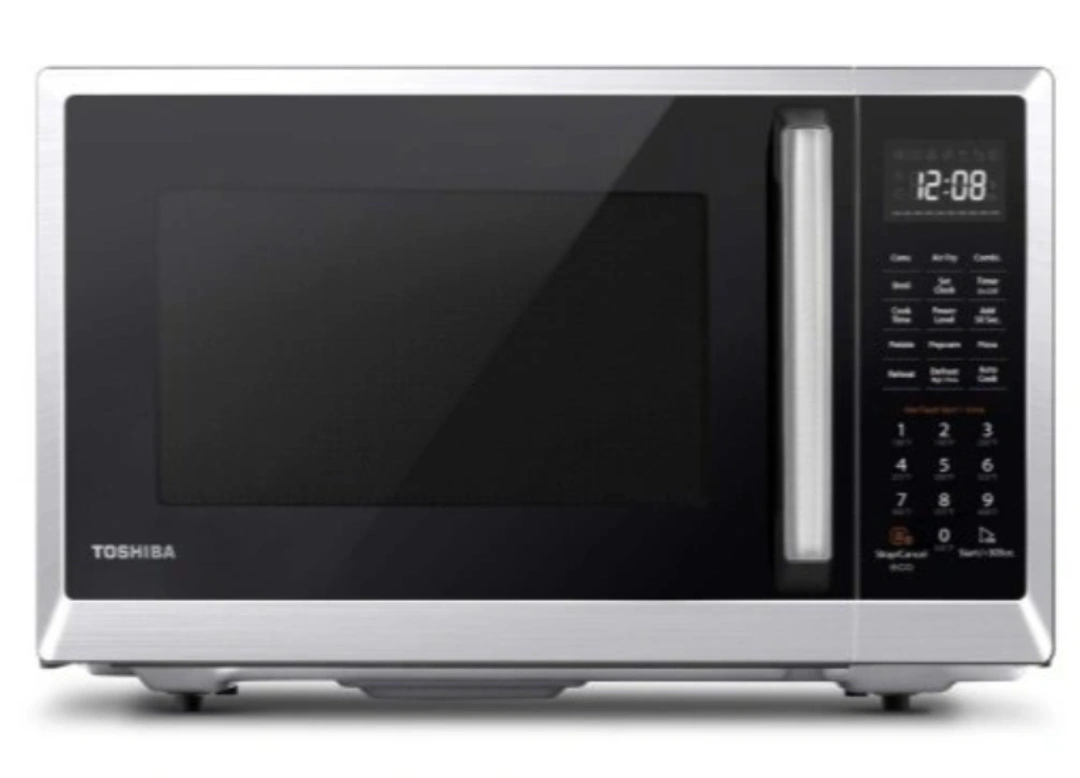The Toshiba Microwave, Stainless Steel Air Fryer, 1.0-cu-ft combines the convenience of a microwave with the versatility of an air fryer in one sleek appliance. Featuring a 900W microwave and 1500W air fry power, it offers 10 power levels and various cooking modes like express cook and auto menus. The stainless steel cavity with LED lighting and glass turntable ensures even cooking and easy cleaning.