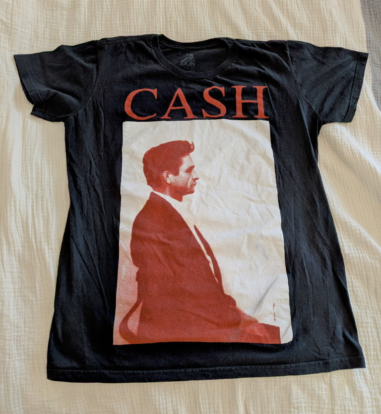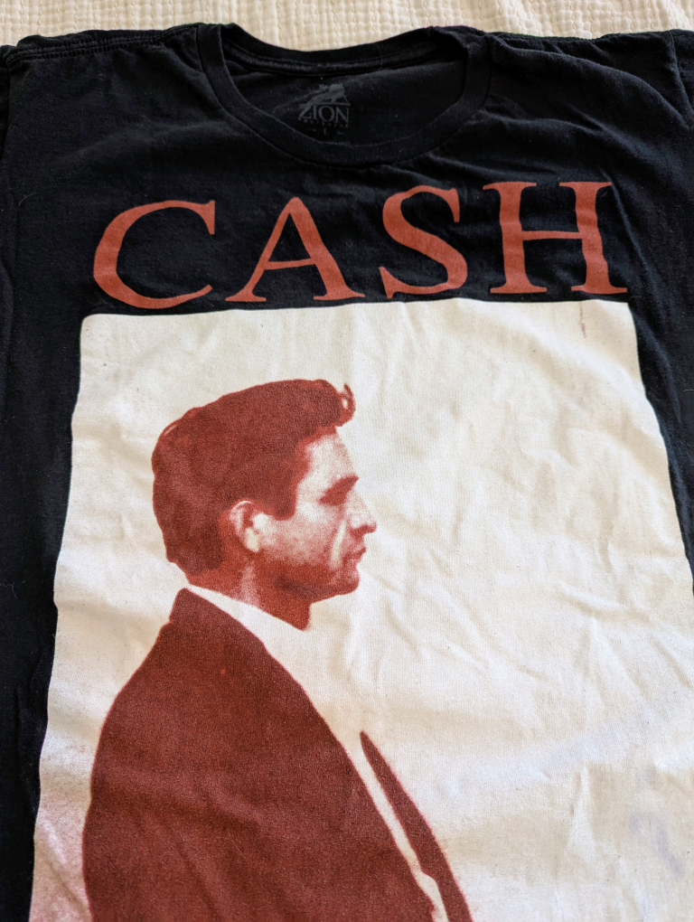Received as a Christmas gift, along with another Johnny Cash shirt. I love Johnny, but I'm not a burgundy guy- not my colour.