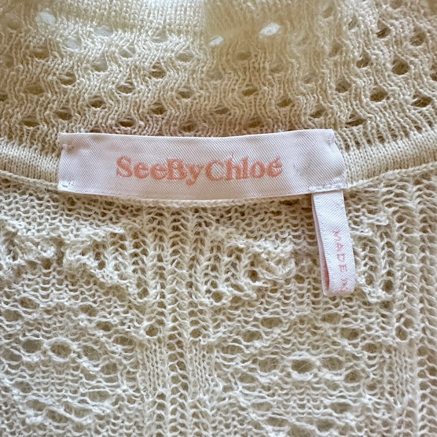 See By Chloe Alpaca Wool White Crop Sweater Frilly Mock Neck S