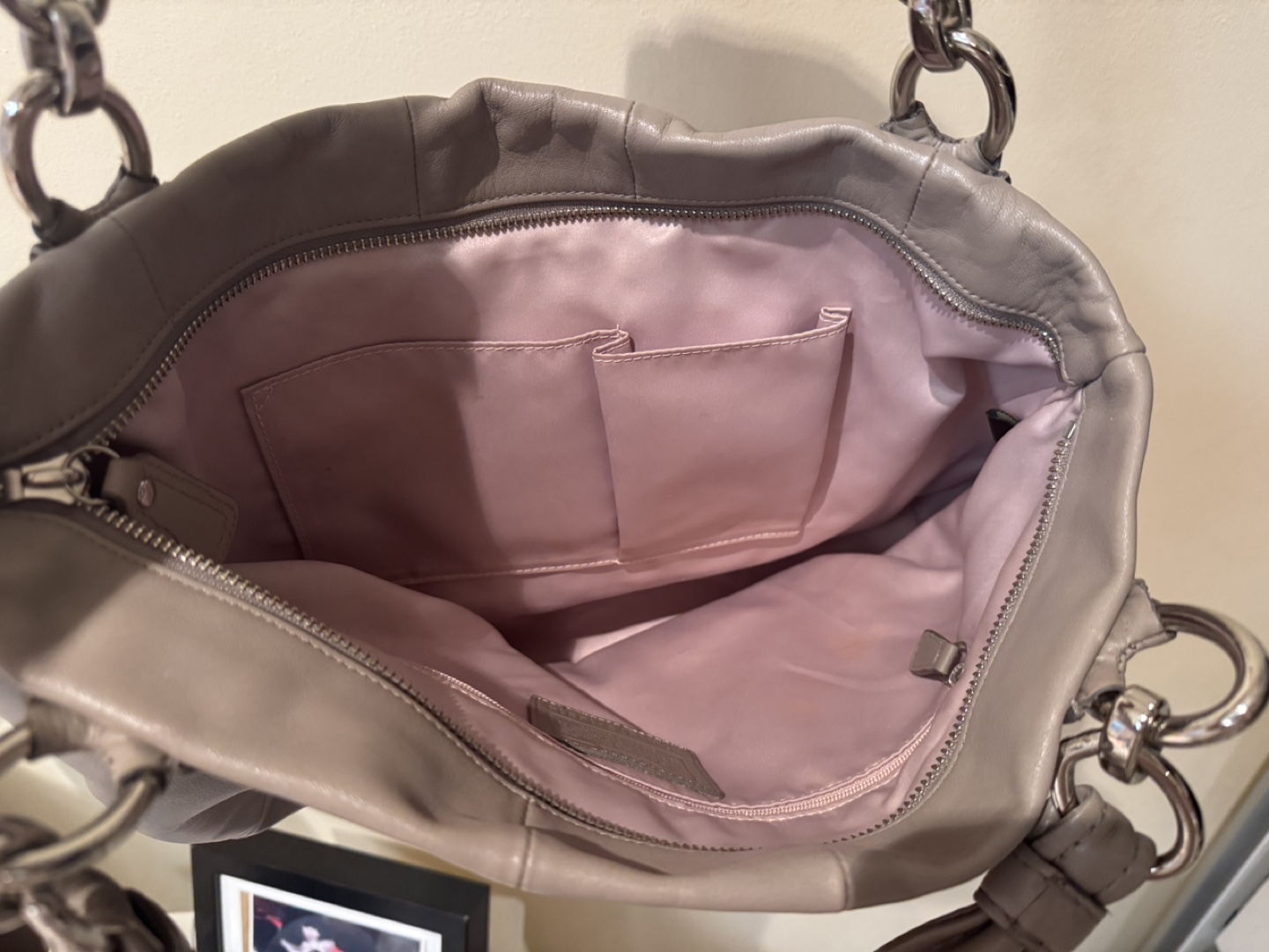 This lovely gray handbag is in Spectacular condition… no wearing at all on handles or bottom. A great addition to your coach collection… or if you’re just a beginning collector… a super starter piece!