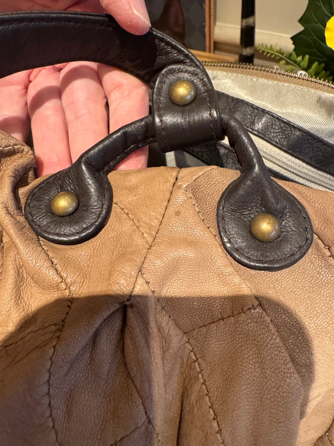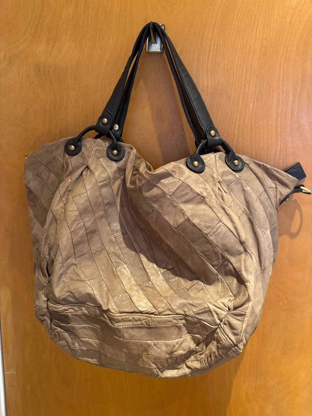 Brown Leather Quilted Tote Bag