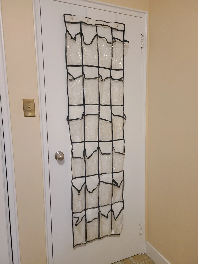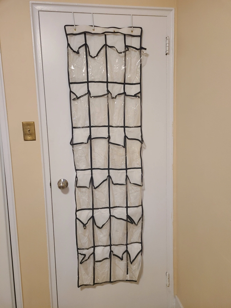Over the door shoe organizer with 24 pockets. Great for organizing shoes or other small items. One hook is missing. Feel free to look at my other listings :) Pick up at Keele and Sheppard