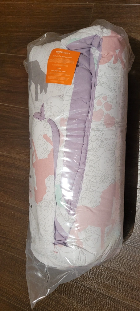 5 piece Amazon Basics Kids Bed-in-a-Bag Microfiber Bedding Set. White, Purple and pink with Unicorn design. Got a wrong Order and couldn't return on time. Unopened.