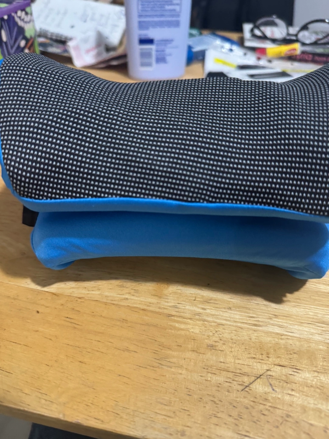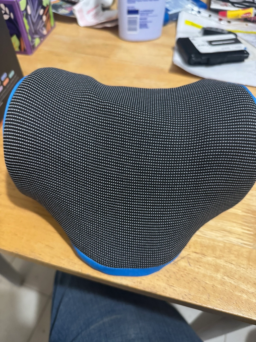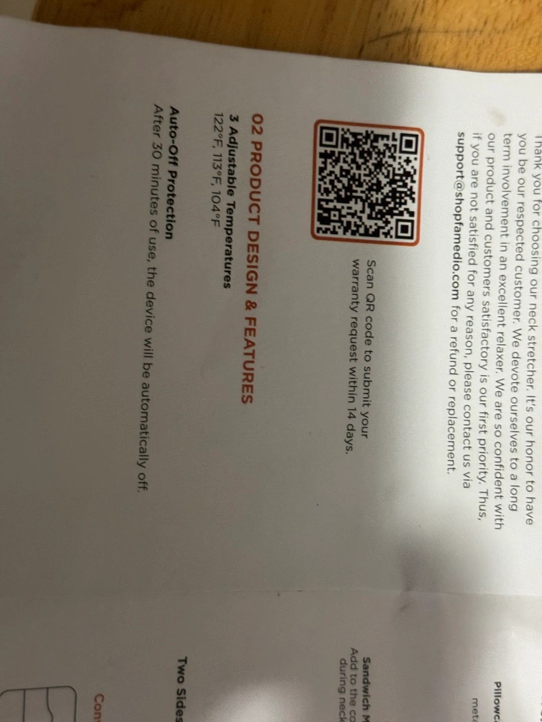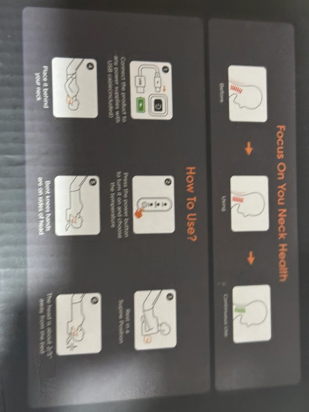Heated cervical traction device. Includes user manual and charging cable.