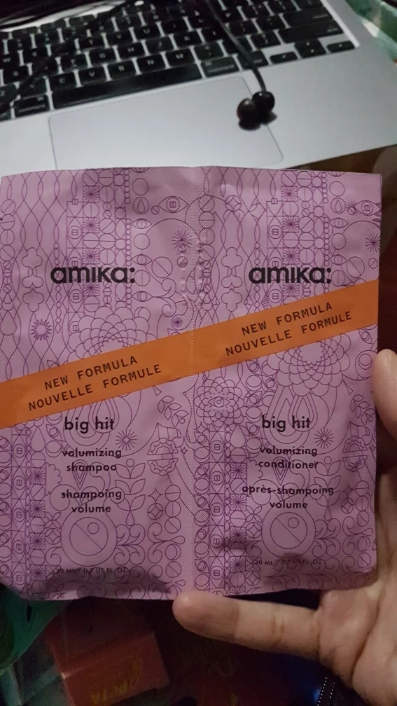 Amika volumizing shampoo and conditioner trial packets