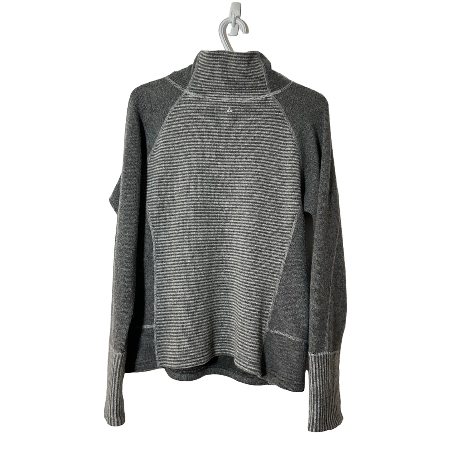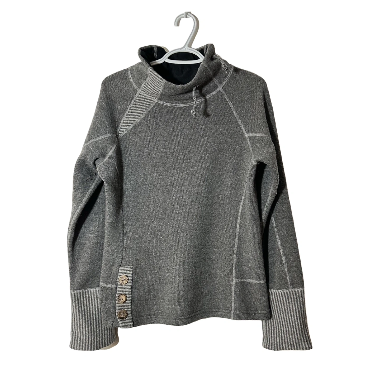 Prana Lucia Tie Funnel Neck Long Sleeve Grey Sweater Medium