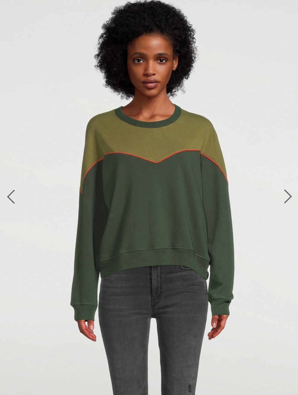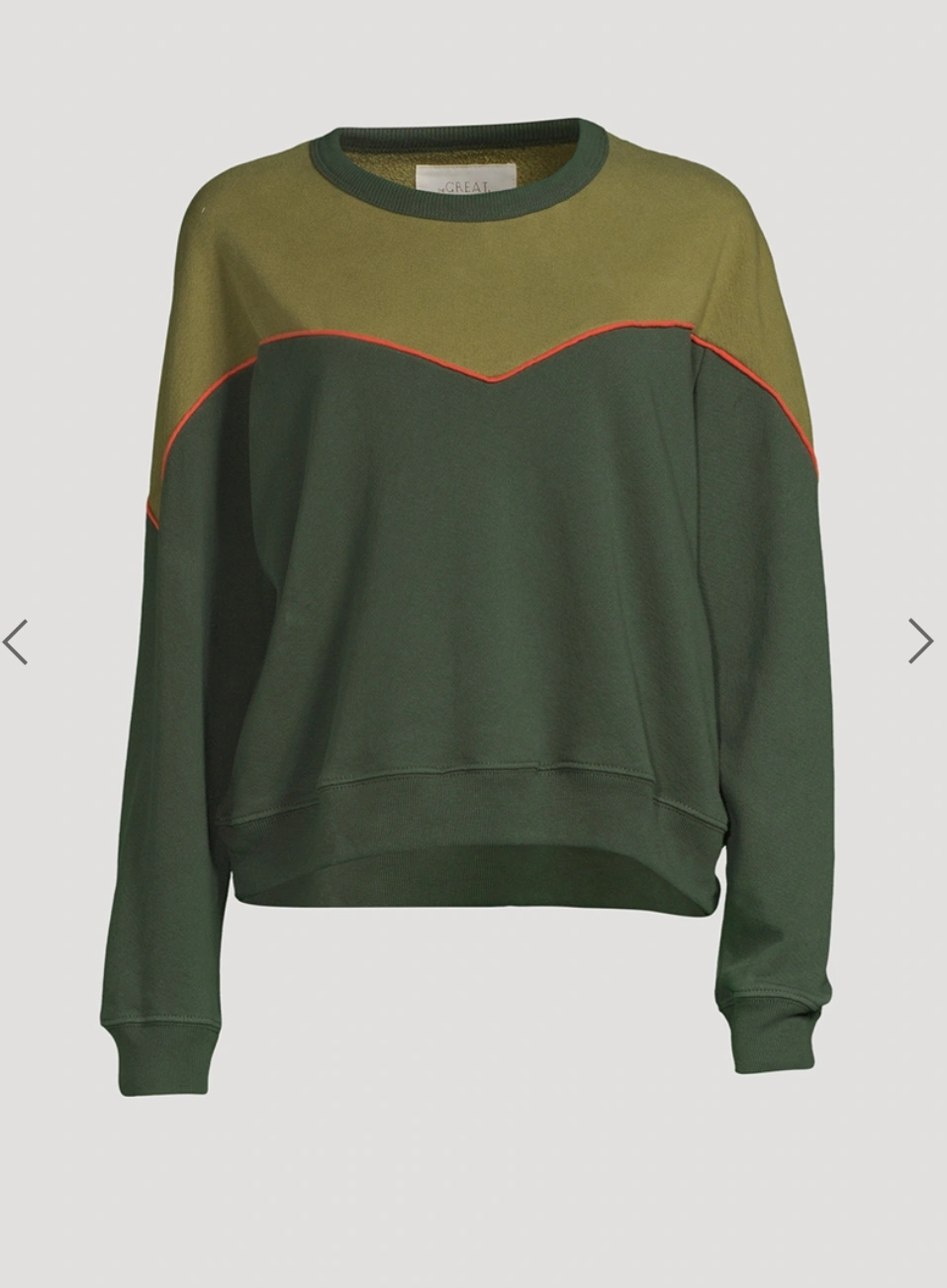 The Western Teammate Sweatshirt is a new style that combines a few of THE GREAT’s favourite design elements. It’s based on one of their signature fits which features clean cuffs and a half moon in the back collar. It’s garment-dyed for bold saturation on its soft knit fabric. And it’s finished with a graphic chevron detail, with a mini-cord contrast between its colourblock pieces.