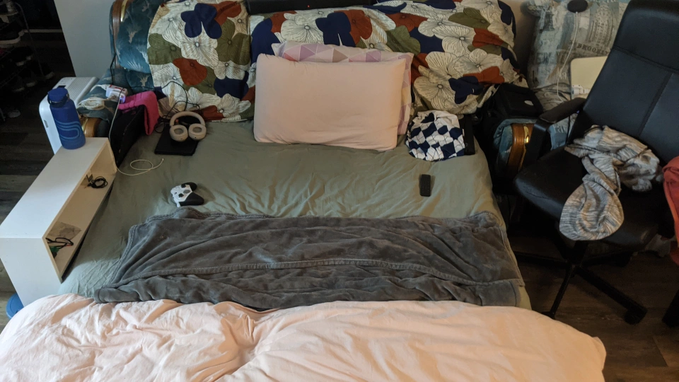 Sofa with three cushions, and comes with a foldable queen size mattress.