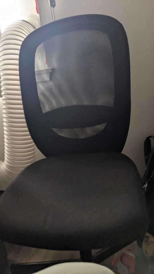 Black mesh office chair with adjustable height. The chair has a black fabric seat and a mesh back. It is in good condition.