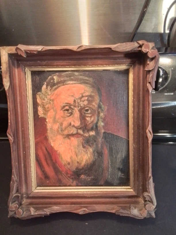 114Signed Framed Vintage Oil Portrait Painting Oil painting of an older man with a beard and a hat. Framed with a wooden frame. Signed and dated in the bottom right corner. Framed oil on board portrait painting signed and dated 1970 Pickup at Young Street and Steels Ave