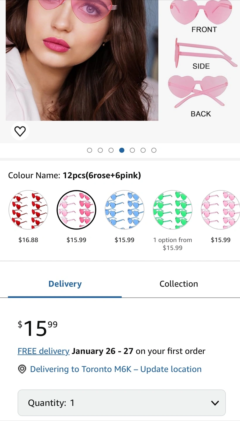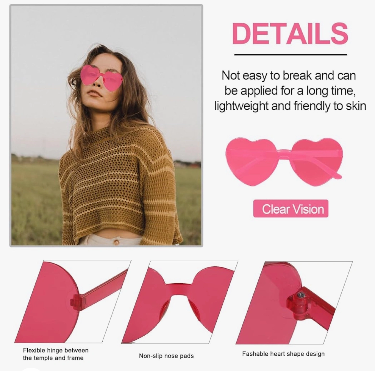 1000+Heart shaped sunglasses, pink, clear lenses. Never worn. Got gift from Secret Santa but won't use it. Regular price $16+ tax