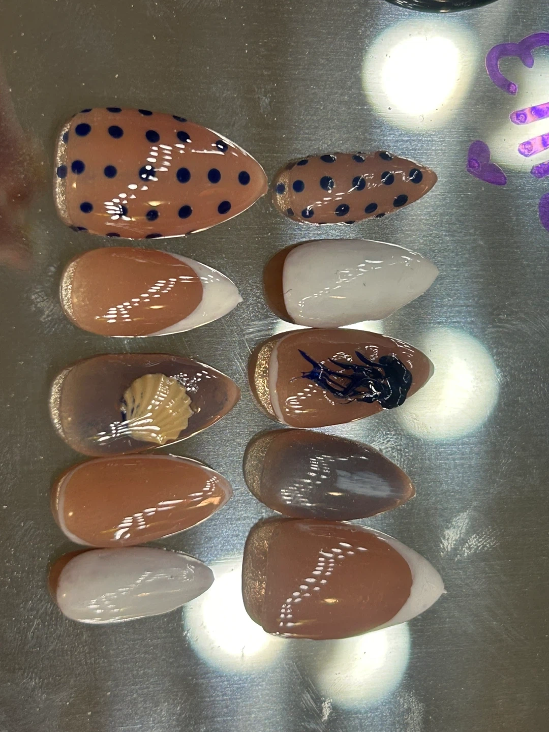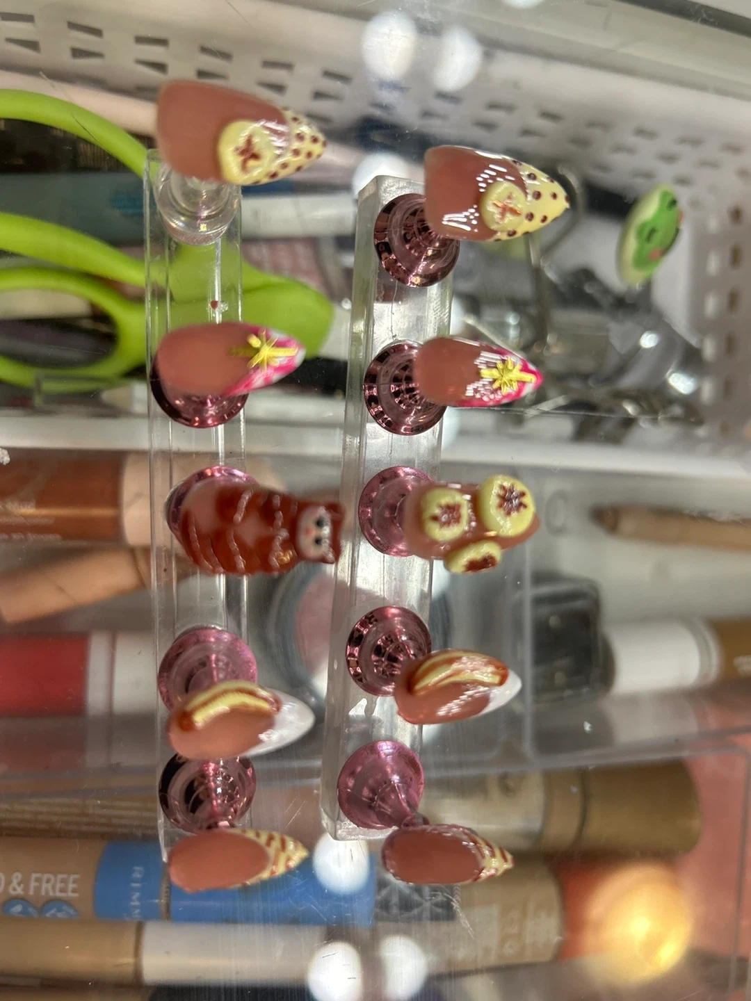 Selling a set of press on nails with various designs. Perfect for adding a fun touch to your look!
