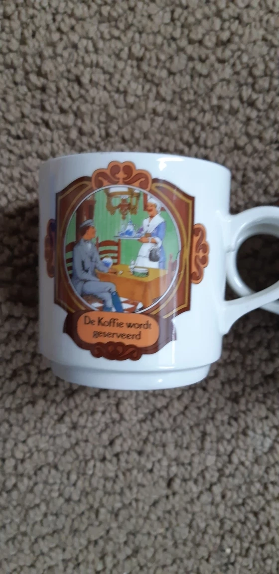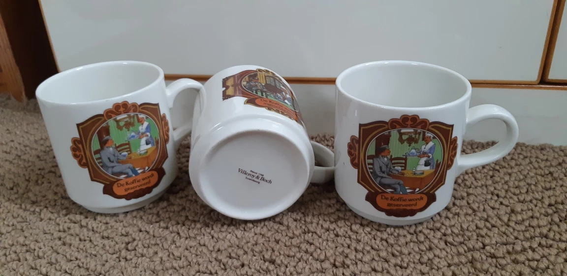 828Set of 3 Villeroy & Boch porcelain coffee mugs From the 1970's Features scene from Dutch folklore Great condition, no cracks or chips