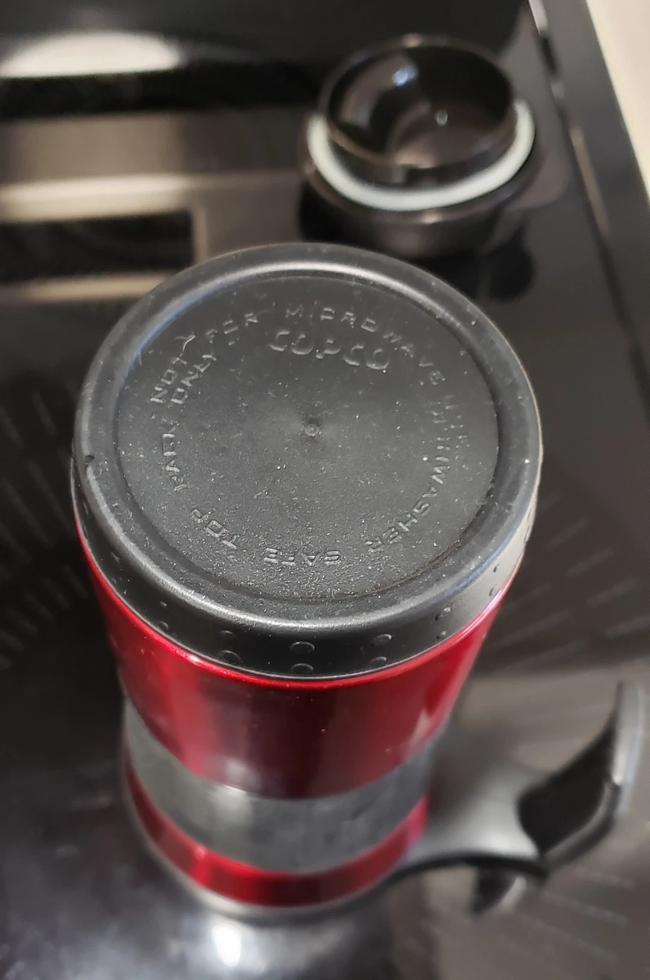 Travel mug with lid and handle. Keeps drinks hot or cold made by Copco. dishwasher safe not for microwave use. hopefully it will go to someone who can make good use of it. #freecycle