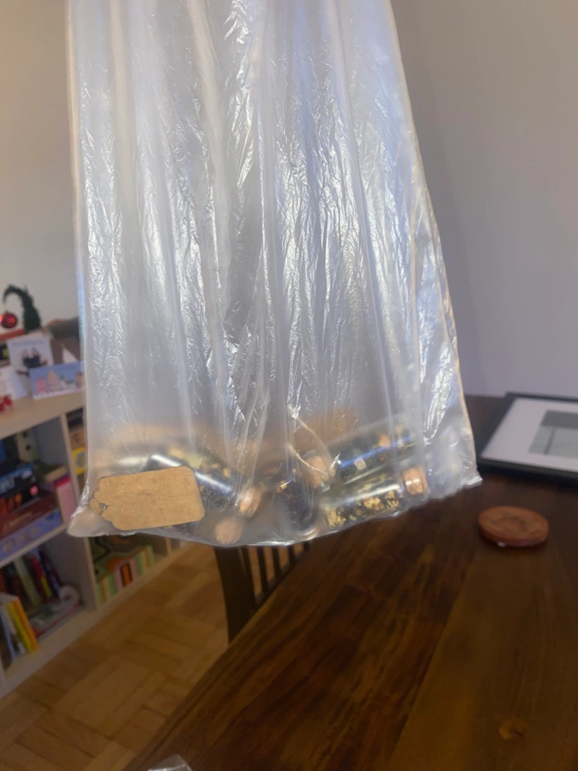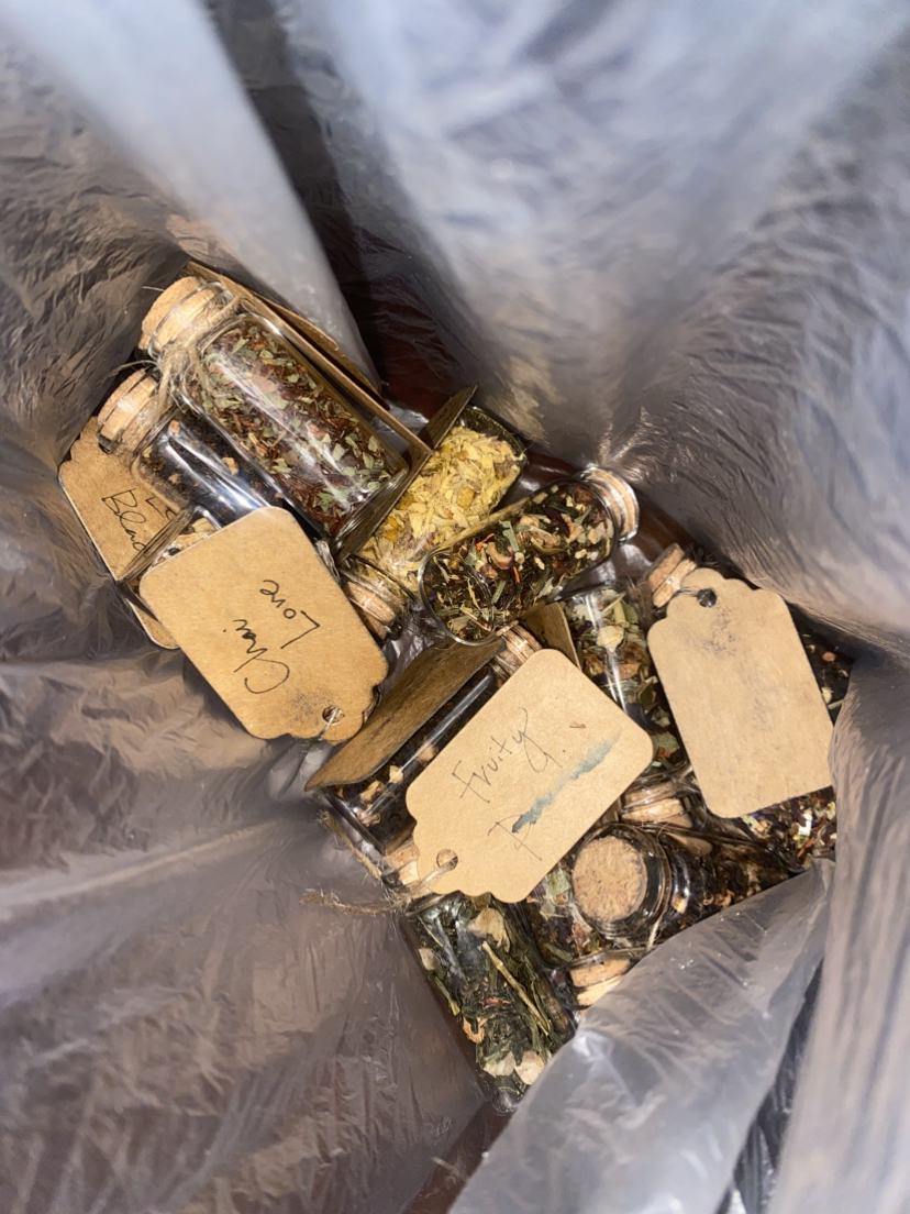 giving away a bunch of little fancy tea bottles. Theres a bunch of a different flavors, they are a mix of black tea and herbal tea.