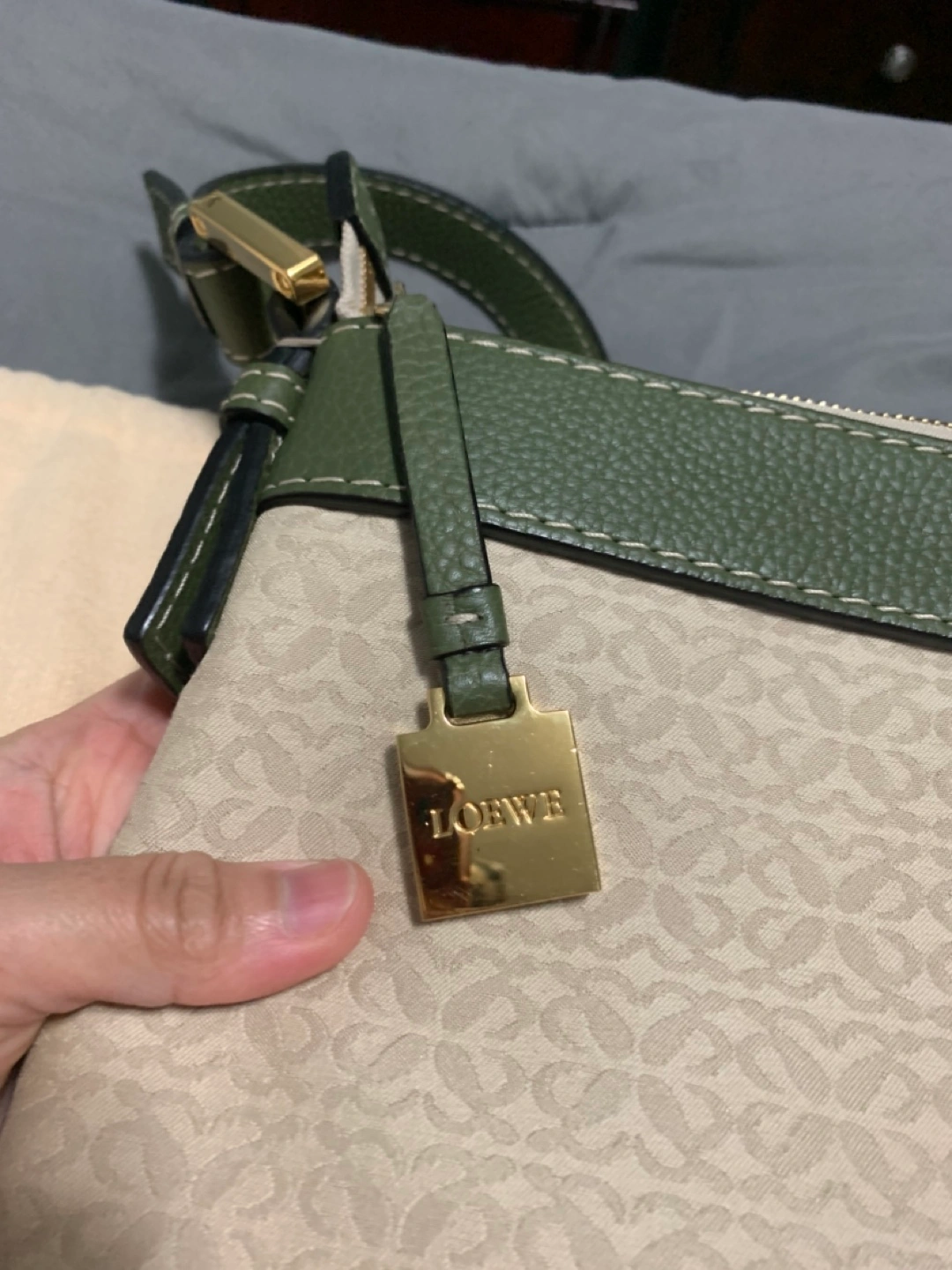 Green and beige handbag with adjustable shoulder strap. Comes with a dust bag.Used only once.