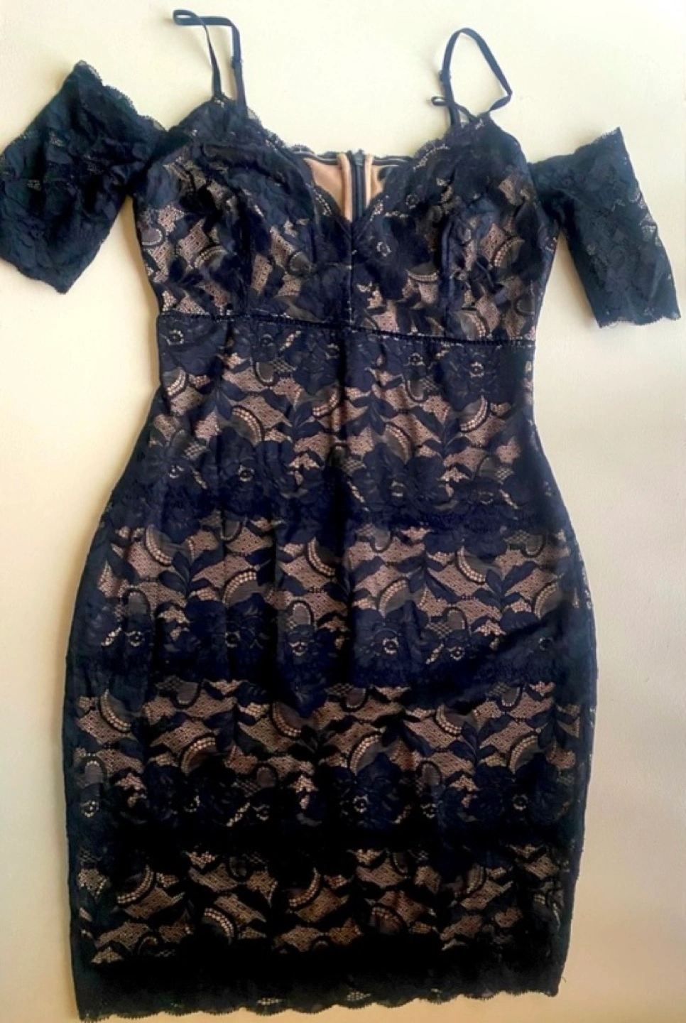 This is a stunner. It's super stretchy. I'm about a size 6 and this dress fits well. The best part is that it's super comfortable.