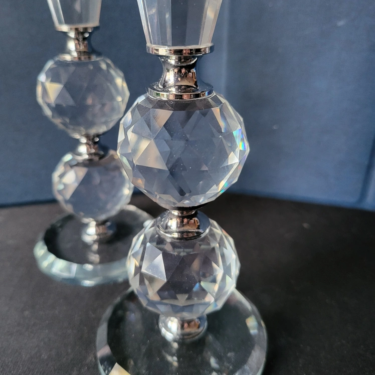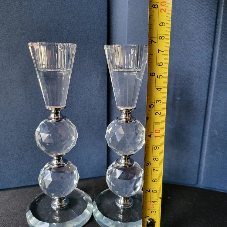 370Set of two heavy glass candle holders. Please refer to the photos for measurements. Check out my other items. Great gift ideas.. Discount when bundling items. pick up St.Clair Ave west and Laughton Ave (M6N 2X7) Xposted OR can meet at St. Clair West Station, but only on the weekends.