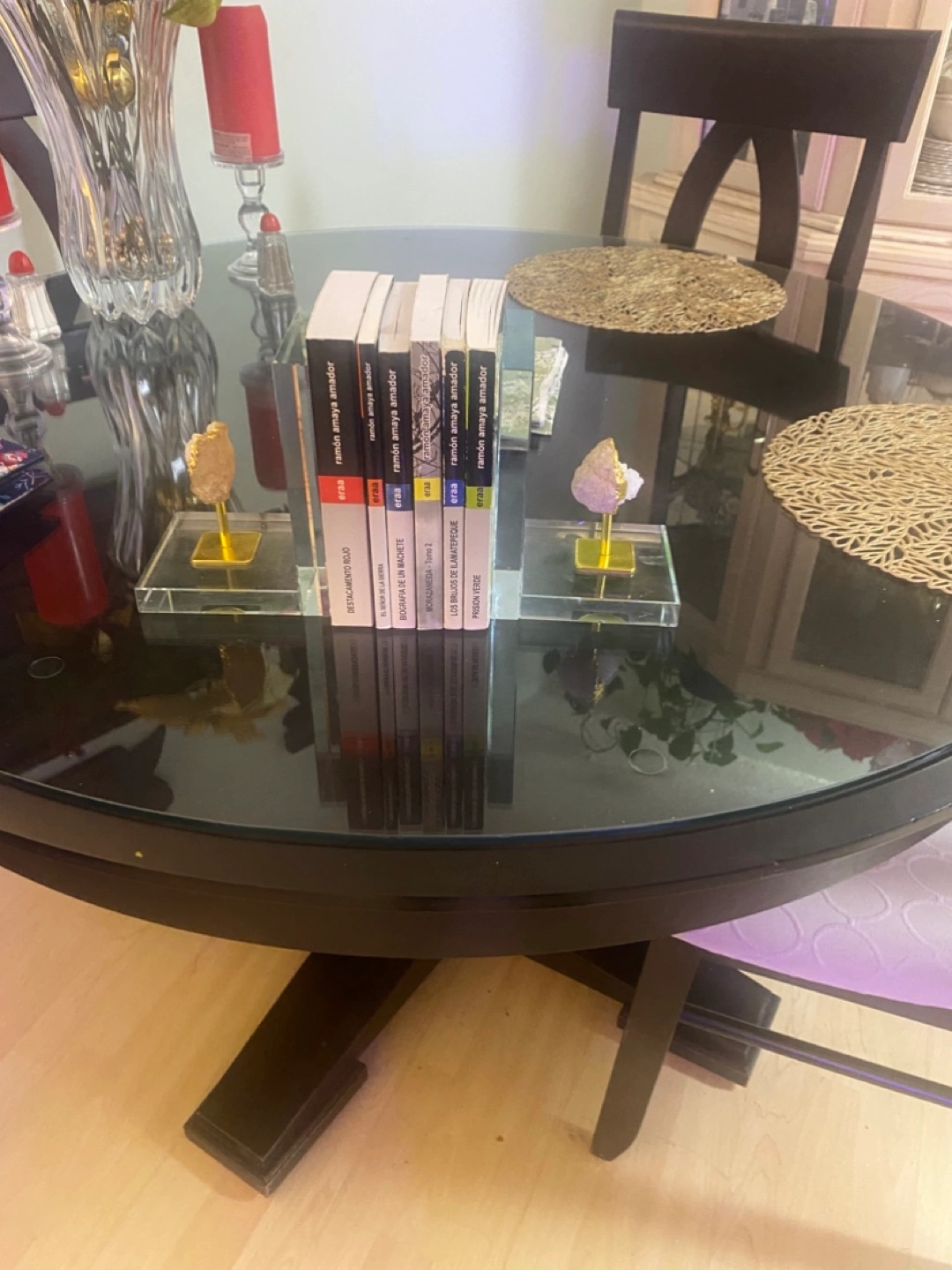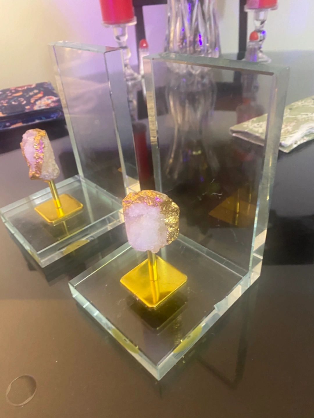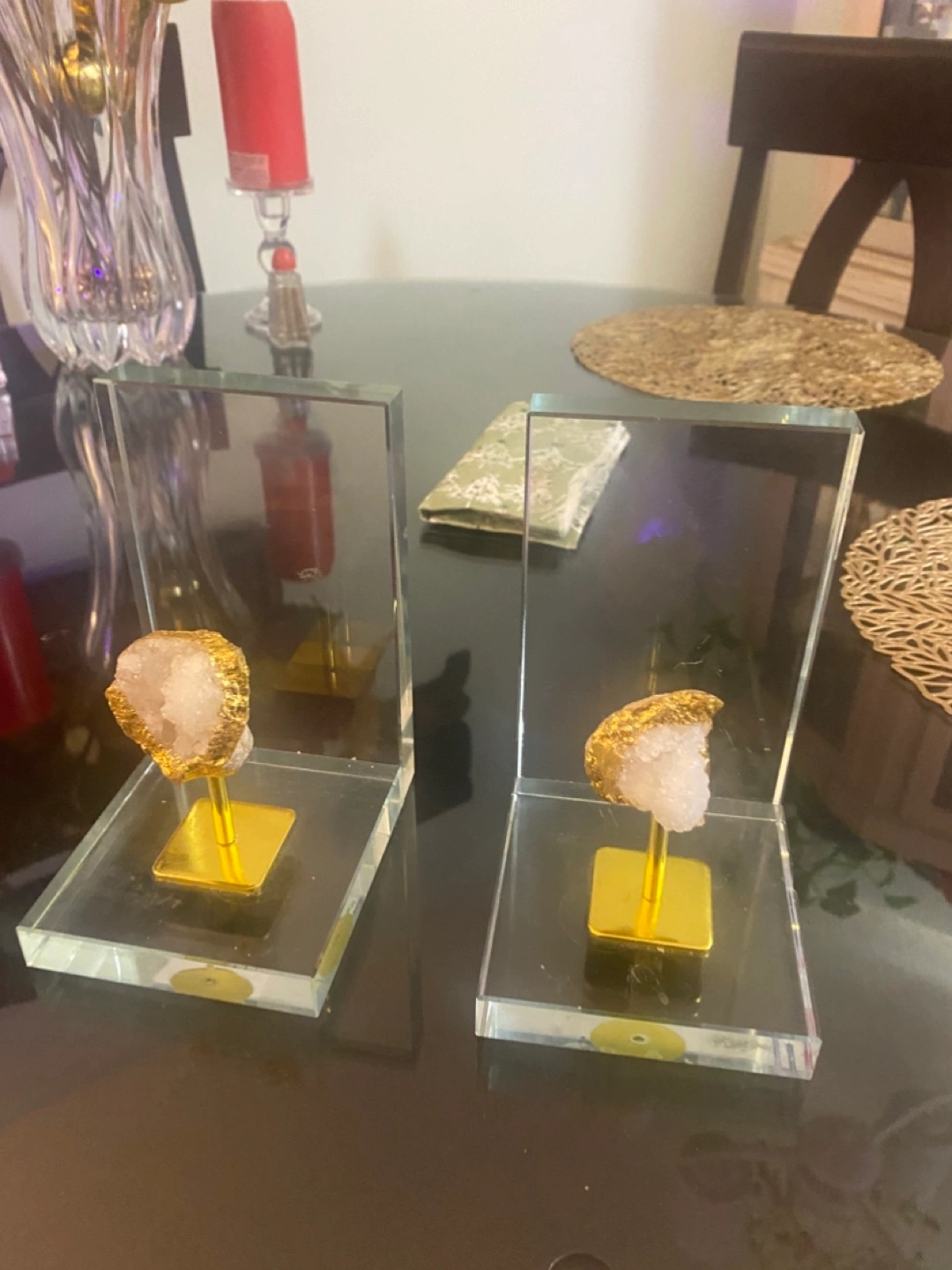 275Glass bookends with gold accents and crystal pieces. Perfect for adding a touch of elegance to your home decor.