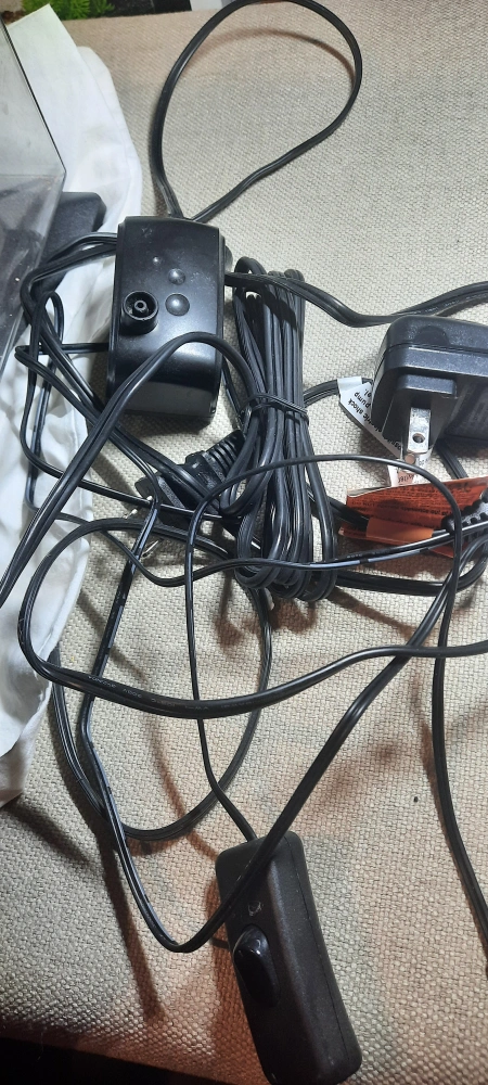 Used Black 5.0-gallon aquarium kit, includes filter, LED light, and power cord. Includes decorations and plants. No fish included.