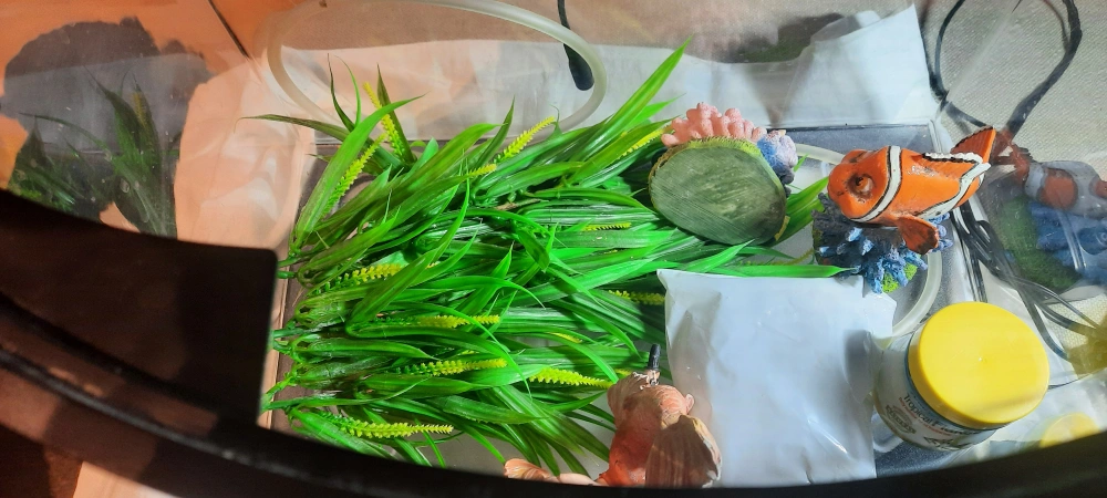 The aquarium is plastic, so no worries about breakage. It's a desktop model. Fish have moved on and it's just taking up space.