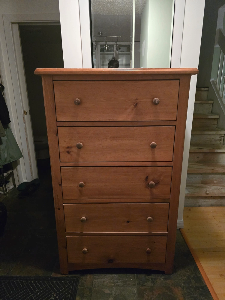 Buy & SellFree DresserFree DresserFreeWood Dresser with five drawers. ConditionLike newDimensions31" W x 55 ½" H x 17 ½ DeepWHERE TO MEETCheck LocationView MapSELLERRobin AGuildford361 review2 chats·4 favorites·209 viewsSEND CHAT TO SELLERHi Robin A! I’m interested in your listing.Hi Robin A! I’m interested in your listing.Get the Karrot app to chatSign In to chat