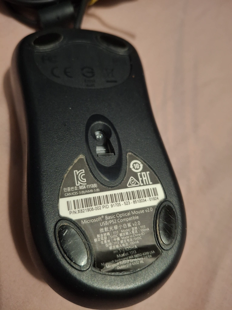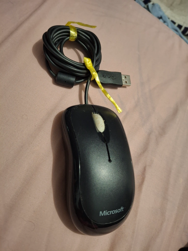 used wired optical mouse with USB connector. giving away this away because I won't need it. I have a back already.