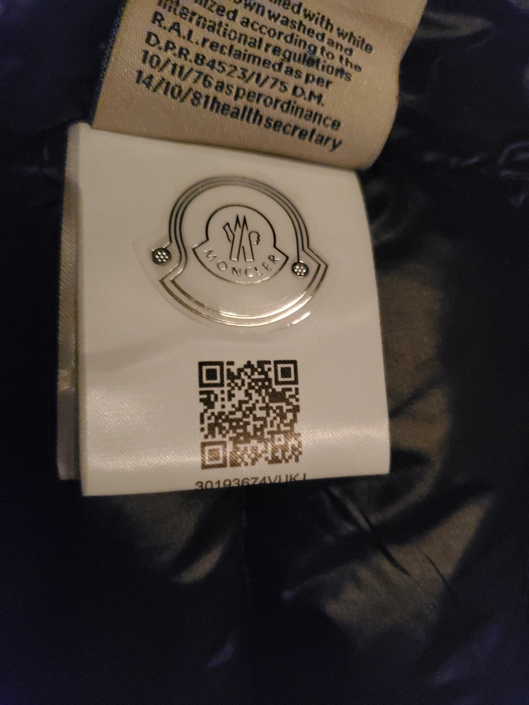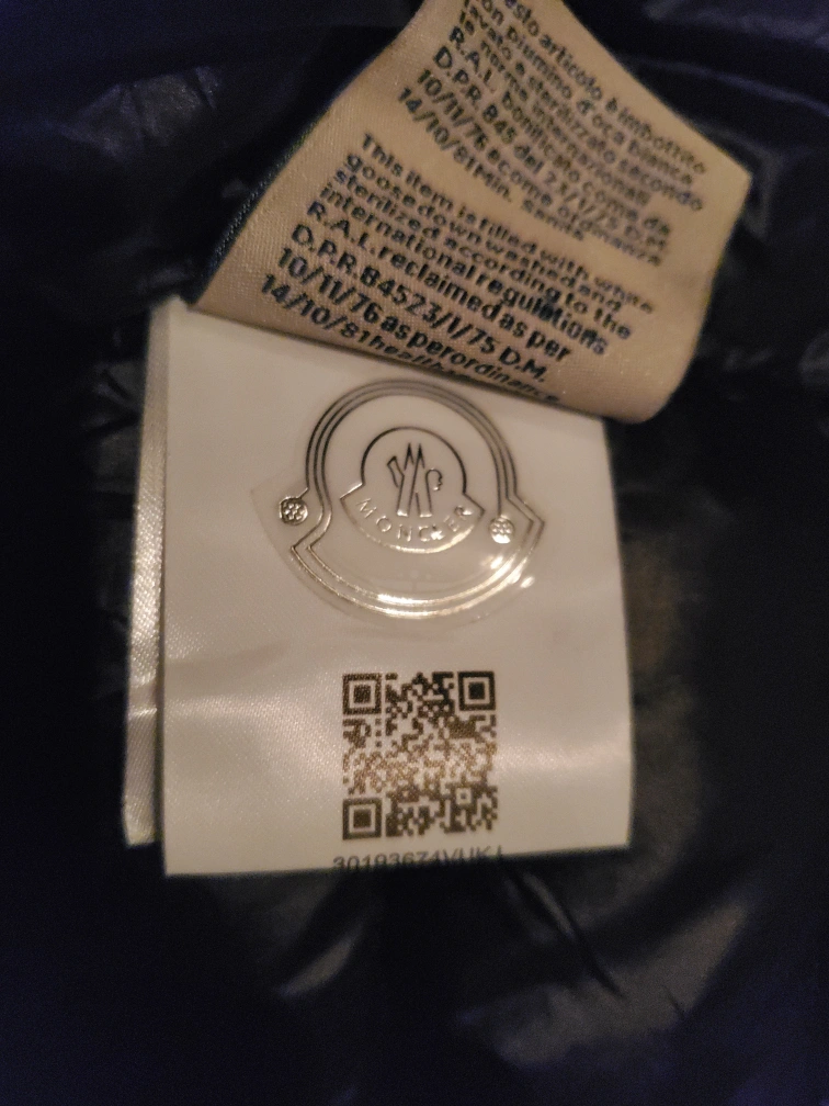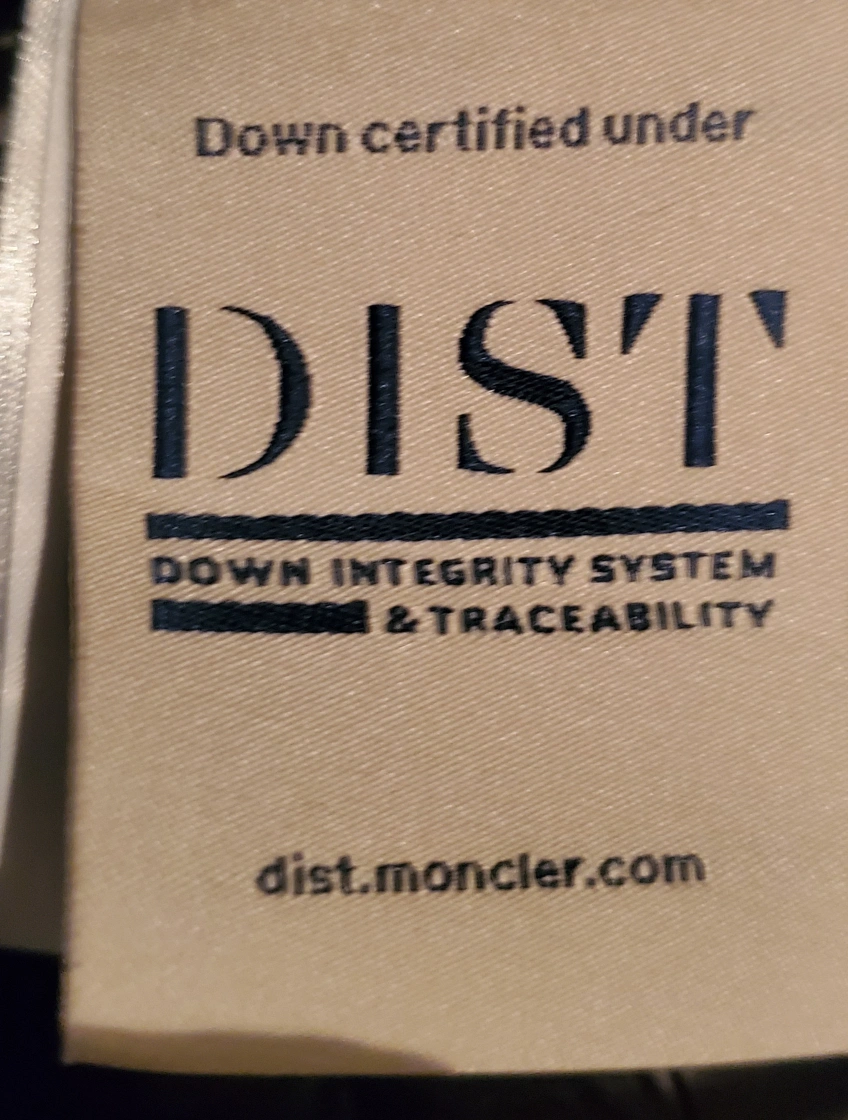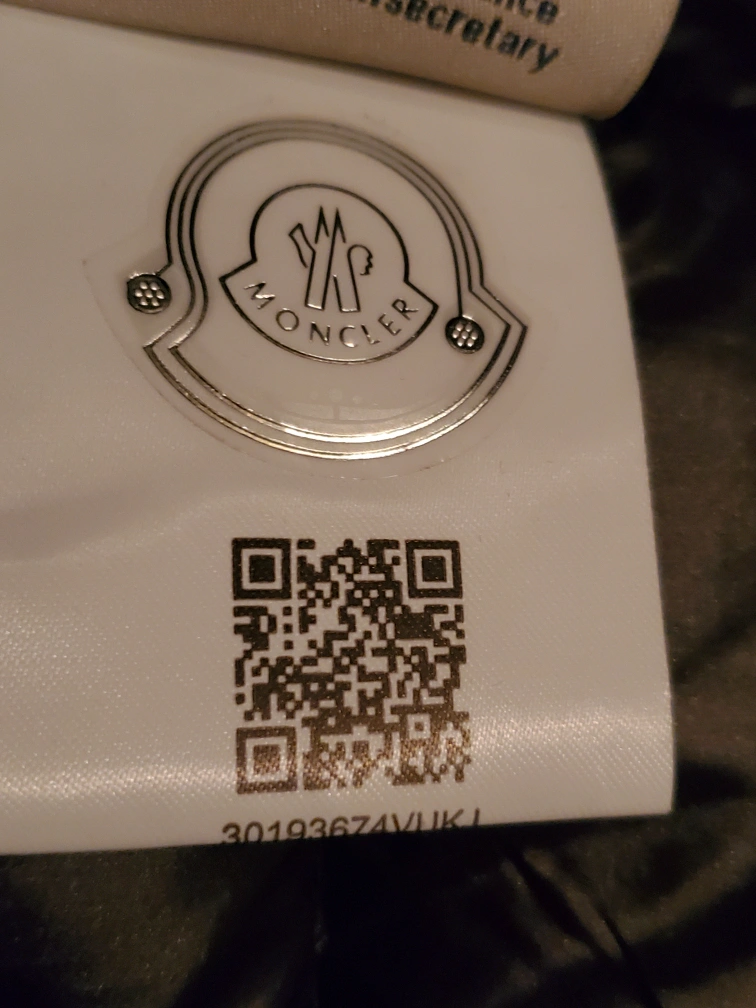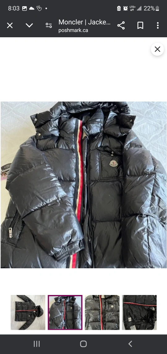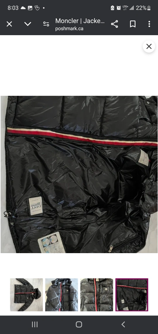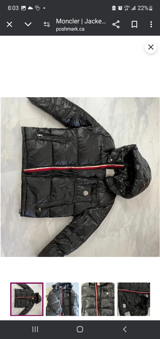 67Black puffer jacket with a white and red stripe down the zipper. Has a hood. 100% authentic