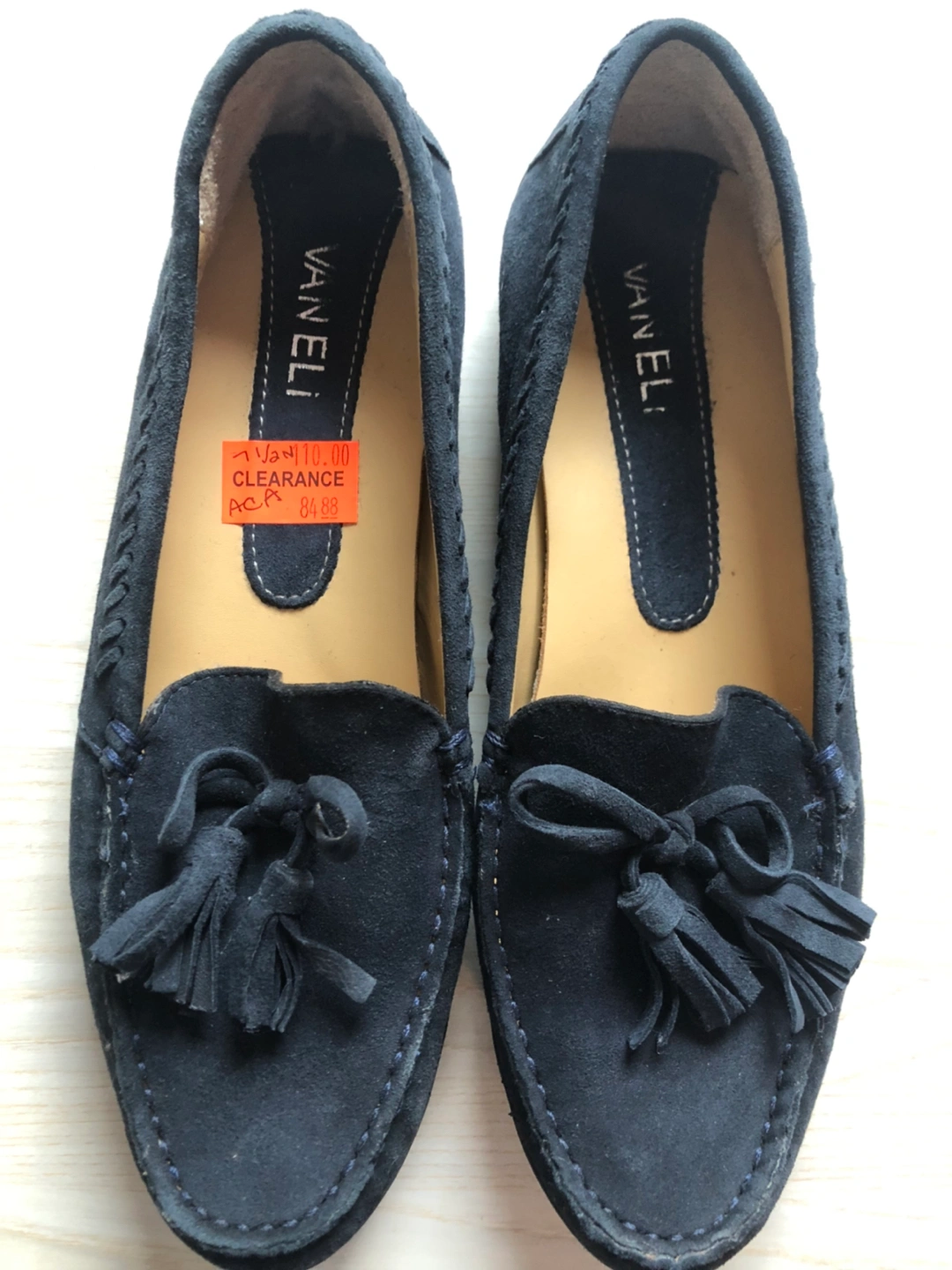Ladies new Vanelli blue suede moccasins. Size 7.5 N. Had them stretched and weather treated, but still a bit too tight. Retail $110 USD. Selling $50. Pick up Dufferin and Rogers or near Pearson airport.
