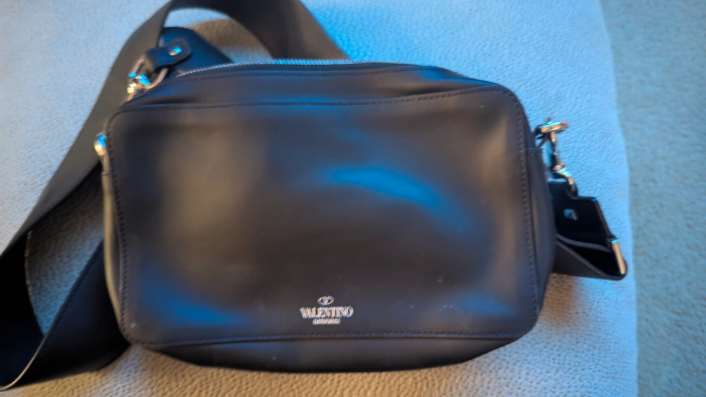 Brand-new stylish Black leather crossbody bag with silver hardware. Adjustable strap. $1200 obo