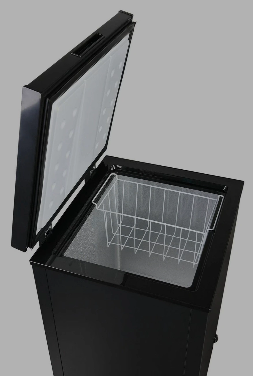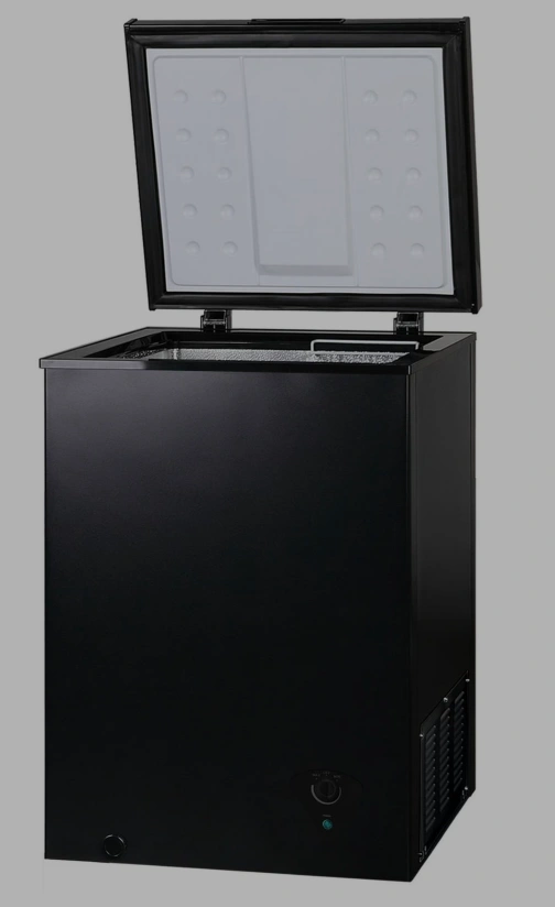 LIKE NEW! Stock up on your Freezer favorites with this black chest freezer. Includes a wire basket. Only a few months old. Moving sale. Pick up in Sherwood Park.