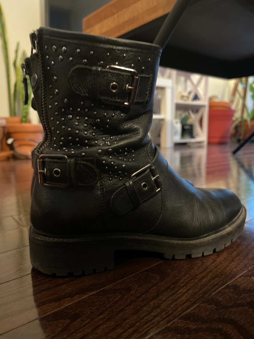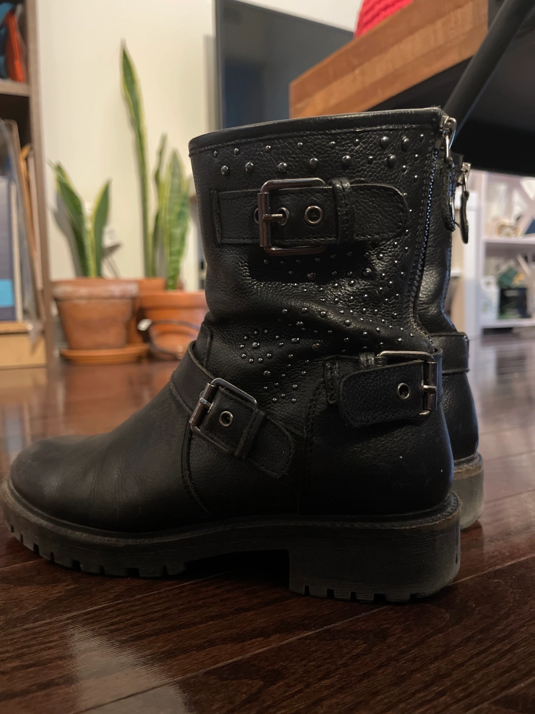 Black Leather Buckle Boots #freecycle